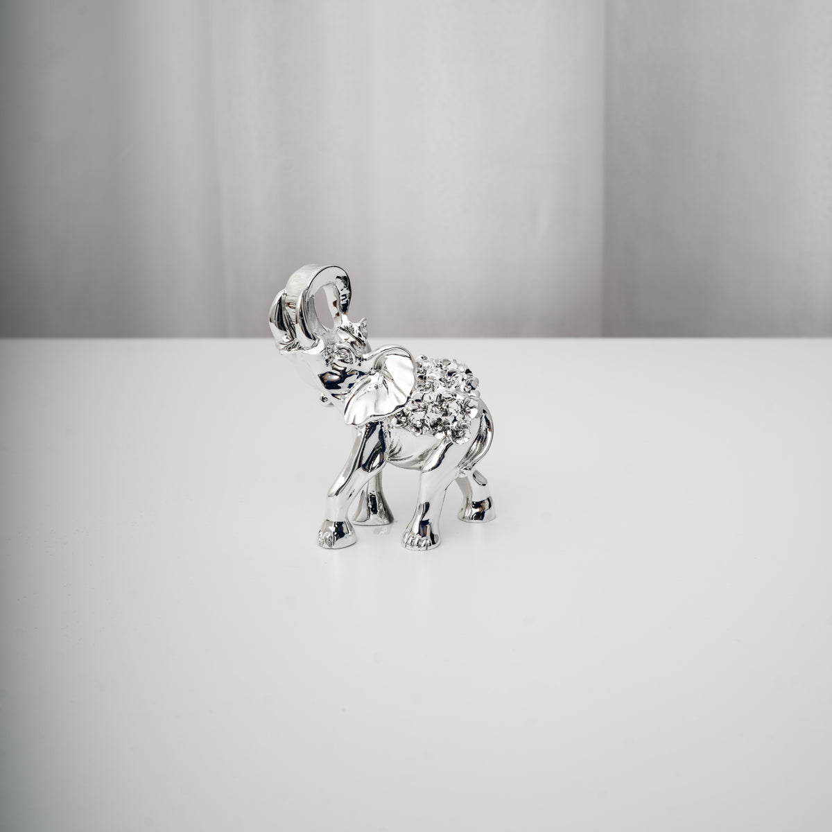 Questo elefante decorativo argentato firmato Meridien è un raffinato elemento d’arredo capace di illuminare qualsiasi ambiente con il suo design brillante e armonioso. Realizzato con una finitura effetto argento specchiato e dettagli in cristalli scintillanti, rappresenta simbolicamente fortuna, forza e prosperità, rendendolo perfetto come regalo o come pezzo distintivo per la propria casa.