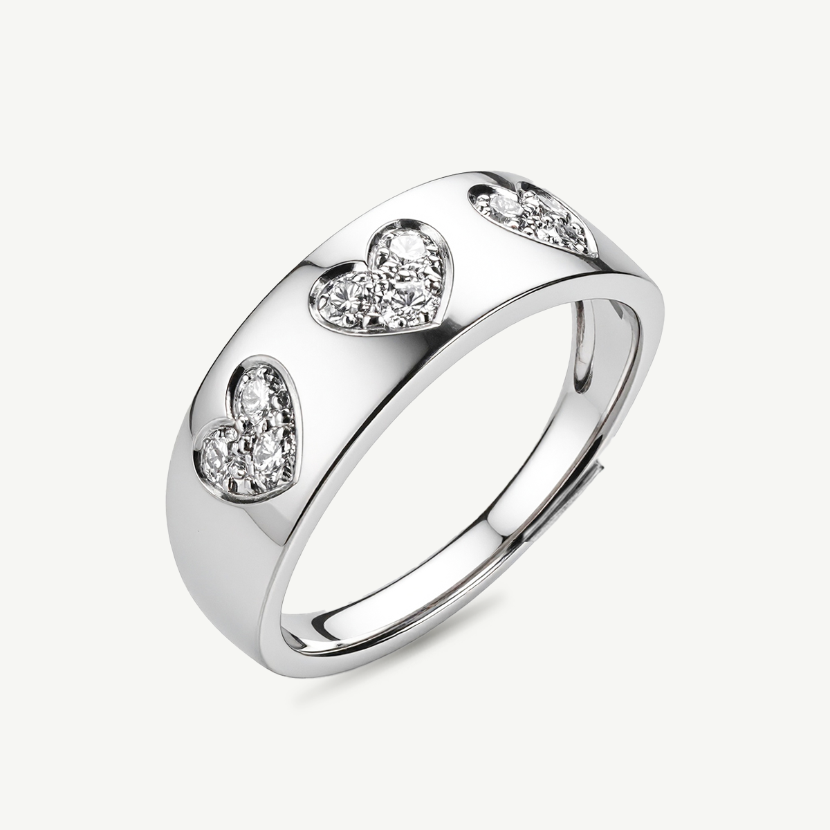 Anello a fascia in argento 925 con pavé a cuore di zirconi.