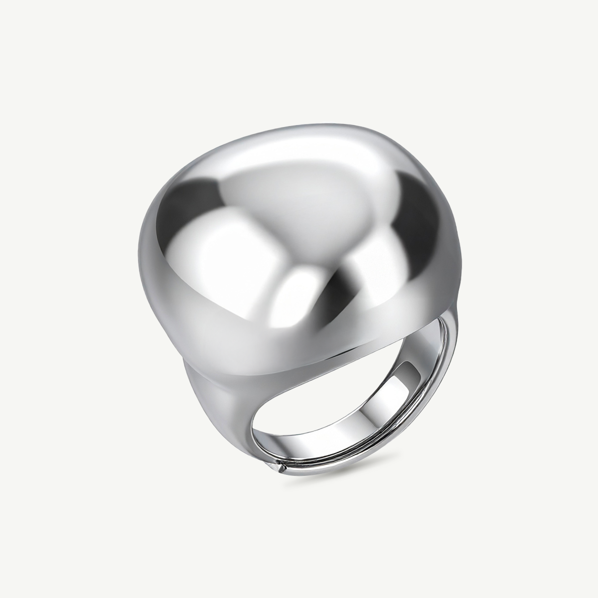 Anello a fascia con parte superiore bombata in argento 925 rodiato.