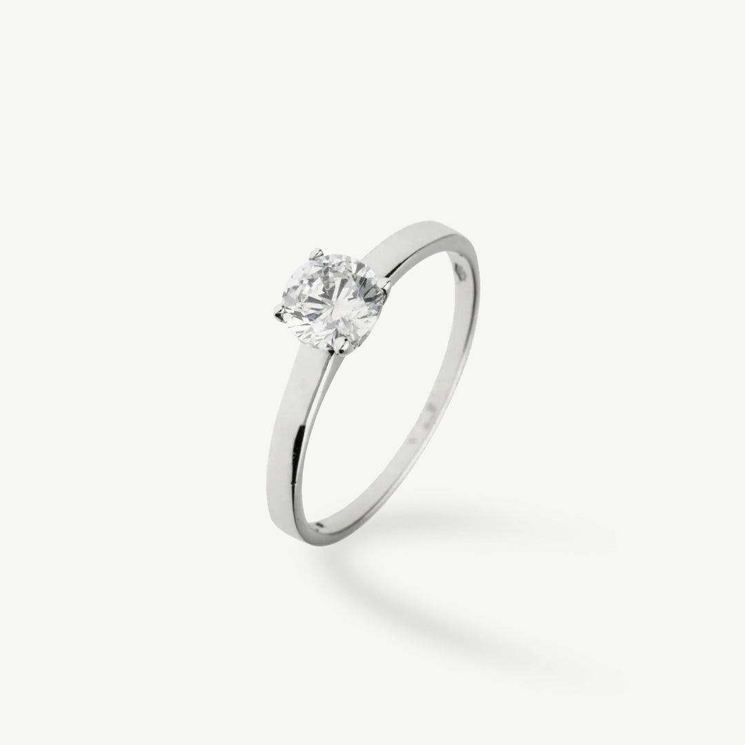 Anello Fabiani solitario in oro bianco 9Kt con zircone