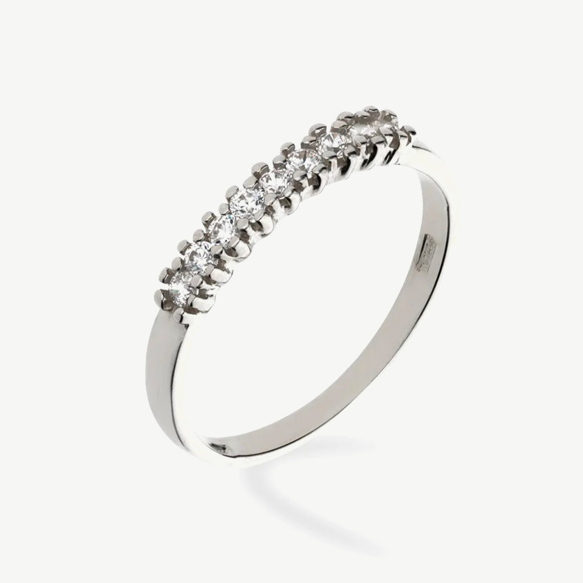 Realizzato in oro bianco 9 carati, questo anello unisce resistenza e stile, risultando perfetto da indossare ogni giorno oppure nelle occasioni speciali. Il design essenziale ma sofisticato lo rende facilmente abbinabile ad altri gioielli, valorizzando qualsiasi look, dal più casual al più elegante.