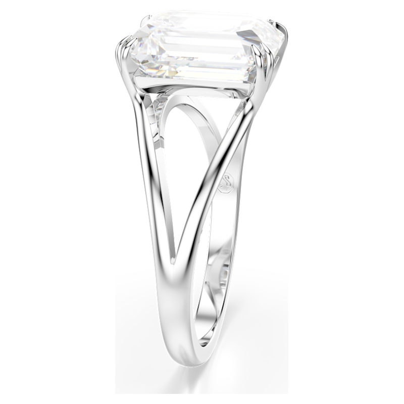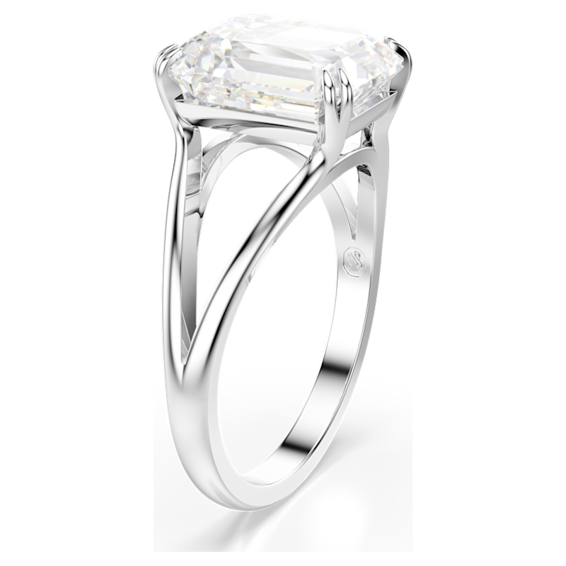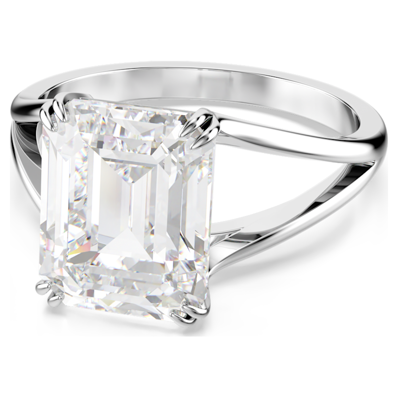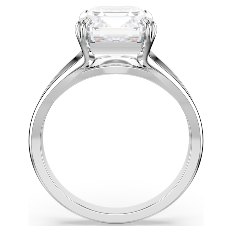 Questo radioso anello cocktail conferirà una nota di glamour in più al tuo styling. Il design placcato rodio presenta una fascia scissa con una Swarovski Zirconia dal taglio Octagon al centro, fissata con una raffinata montatura a griffe doppia. Una creazione mozzafiato che risplende di luce propria.