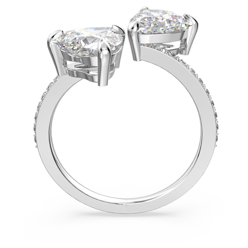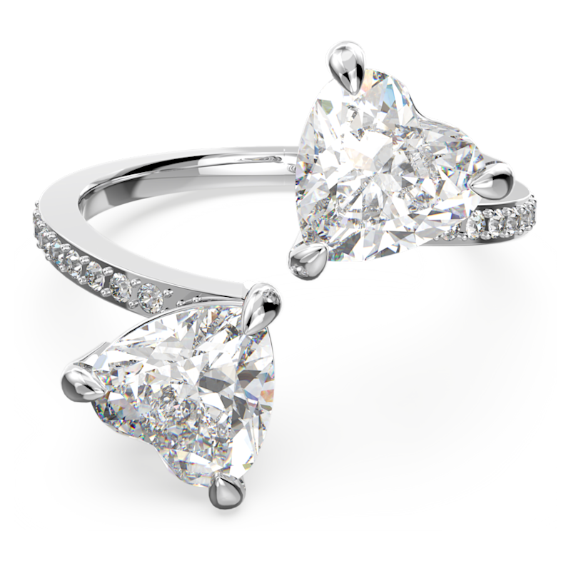 Questo anello Swarovski rodiato è ispirato all'idea di due cuori che si incontrano. Cattura lo spirito del romanticismo con due pietre a forma di cuore dal taglio elegante che si incontrano al centro. Il bianco luccicante dei cuori è impreziosito ancora di più da un design semplice ed elegante. Il suo intramontabile simbolismo fa di questo anello Swarovski il regalo perfetto per una persona speciale.