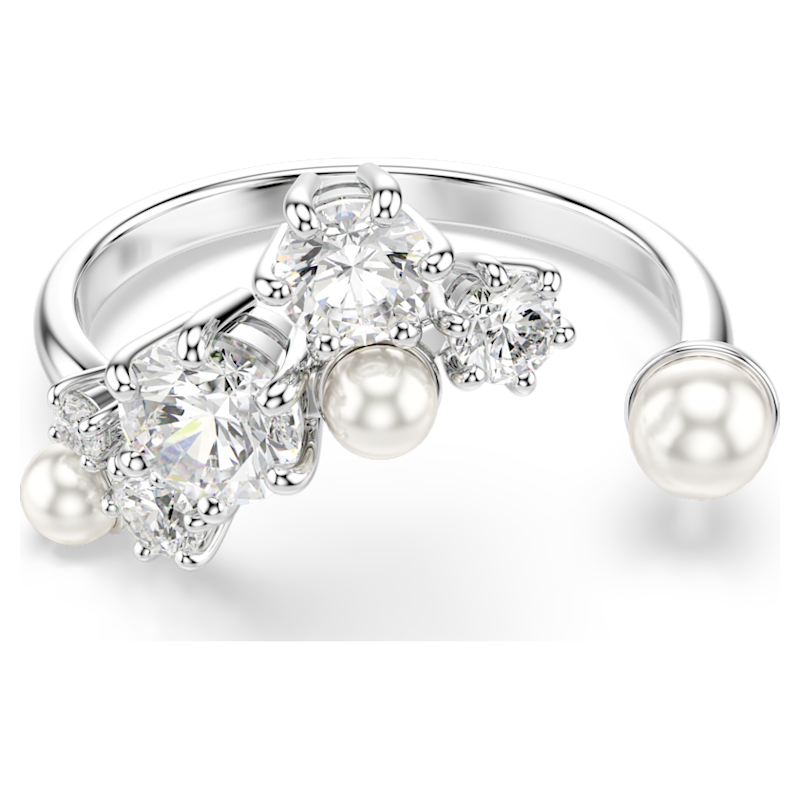 Anello aperto Constella, Crystal Pearl, tagli Round, Bianco, Placcato rodio