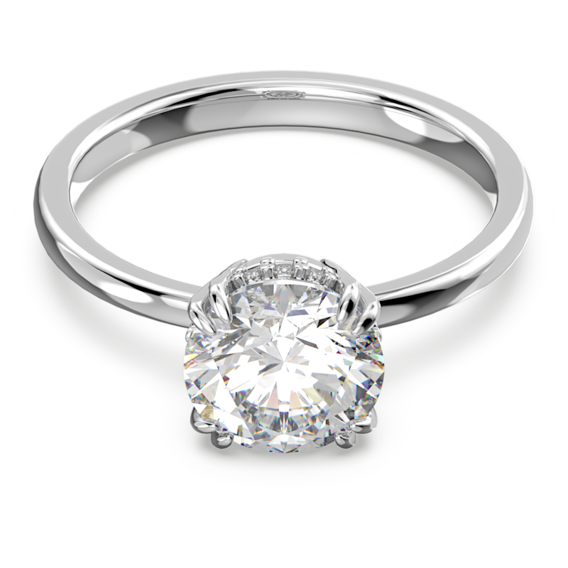 Anello cocktail Stilla, Taglio Round, Bianco, Placcato rodio