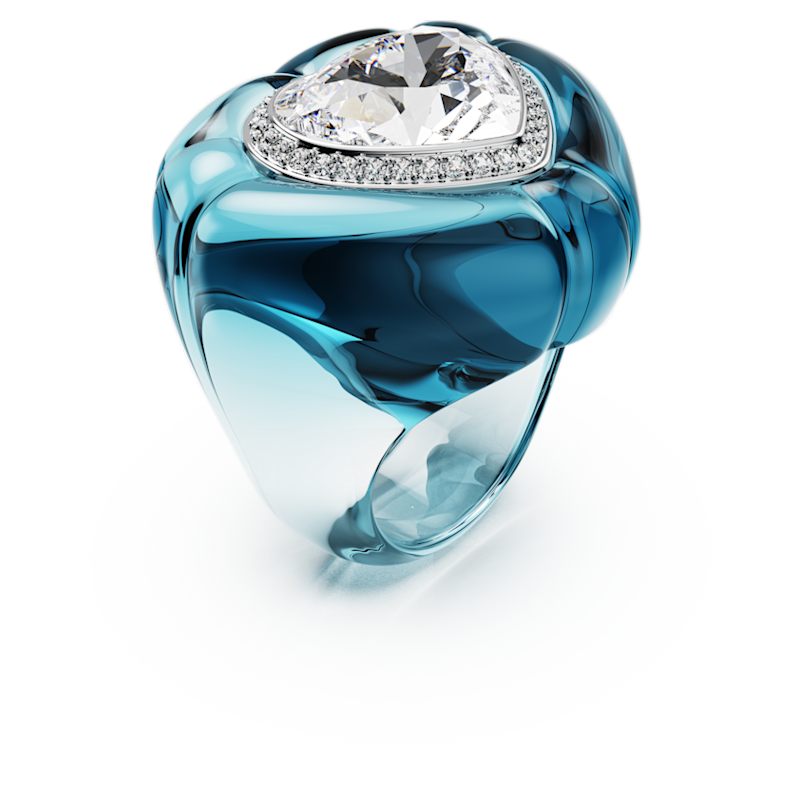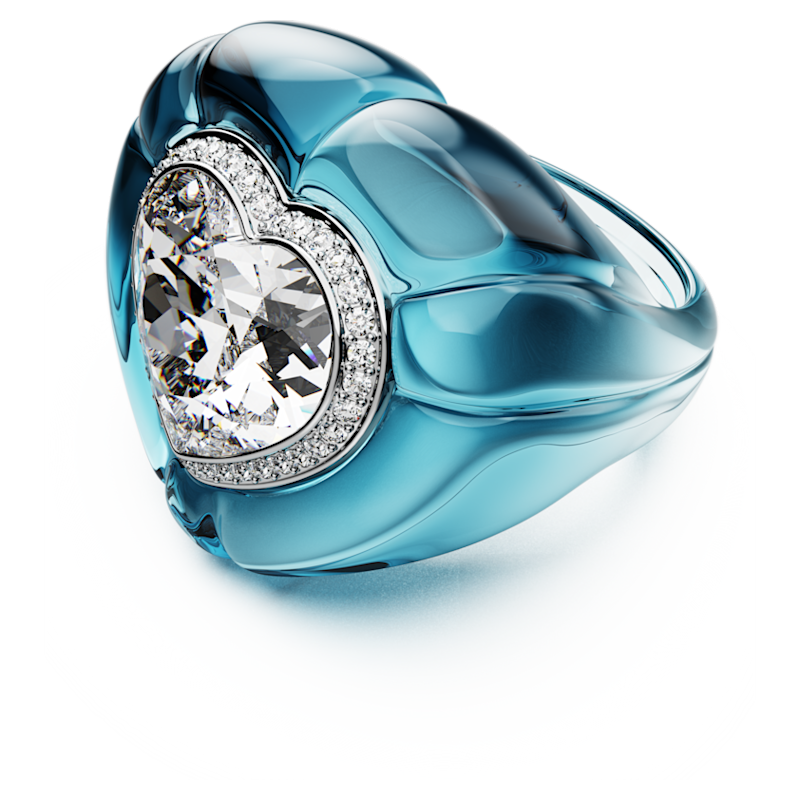 Ispirato alla gioia del movimento Pop Art, questo anello cocktail è un modo giocoso per colorare il tuo stile. La fascia blu a forma di cuore si abbina a un cristallo Cry a forma di cuore, circondato da un pavé di cristalli Cry in una montatura placcata rodio. Indossalo in qualsiasi momento per un tocco di brillantezza sorprendente o esprimi la tua creatività abbinandolo ad altri anelli cocktail della famiglia Dulcis.