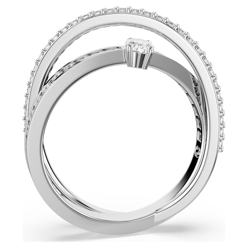 Questo anello Hyperbola intrecciato integra più stili in un unico design meravigliosamente compatto. Le sue due fasce placcate rodio sovrapposte sono impreziosite da Swarovski Zirconia trasparenti con montature a binario e a griffe. Un cristallo aggiuntivo taglio Oval è inframmezzato per un impatto aggiuntivo. Abbinalo ad un bangle coordinato per un look davvero mozzafiato.
