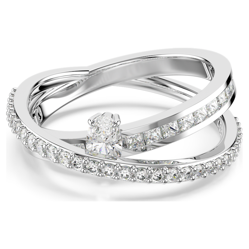 Questo anello Hyperbola intrecciato integra più stili in un unico design meravigliosamente compatto. Le sue due fasce placcate rodio sovrapposte sono impreziosite da Swarovski Zirconia trasparenti con montature a binario e a griffe. Un cristallo aggiuntivo taglio Oval è inframmezzato per un impatto aggiuntivo. Abbinalo ad un bangle coordinato per un look davvero mozzafiato.