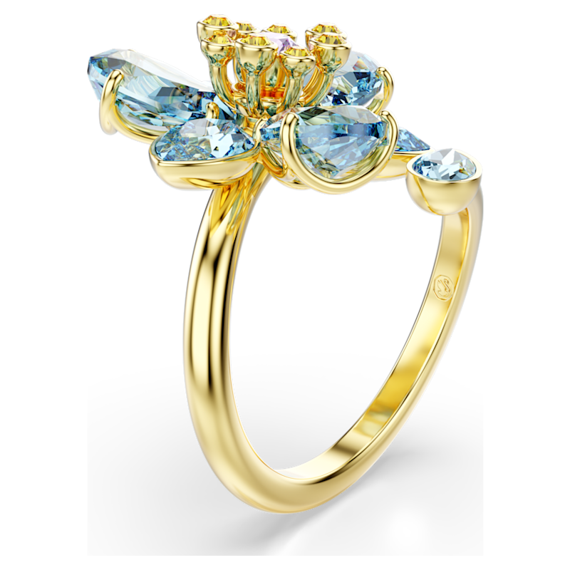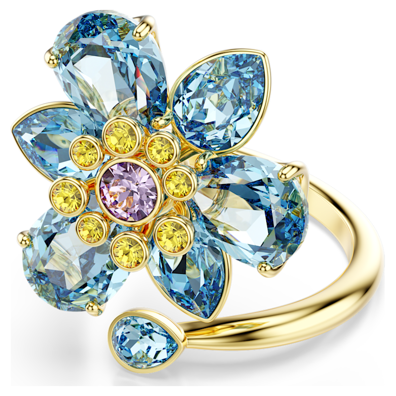 Eleva il tuo stile ispirato alla natura con questo scintillante anello a motivo. La fascia placcata in tonalità oro avvolge il dito con una spirale che culmina in un fiore centrale realizzato con cristalli blu e gialli. Le diverse forme e tonalità racchiudono la magia in ogni dettaglio. Abbina questo anello a un pendente Idyllia coordinato per ottenere un look pervaso da colore e gioia.