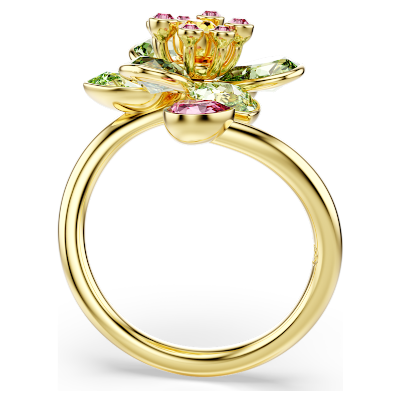 Eleva il tuo stile ispirato alla natura con questo scintillante anello a motivo. La fascia placcata in tonalità oro avvolge il dito con una spirale che culmina in un fiore centrale realizzato con cristalli verdi, rosa e gialli. Le diverse forme e tonalità racchiudono la magia in ogni dettaglio. Abbina questo anello a un pendente Idyllia coordinato per ottenere un look pervaso da colore e gioia.