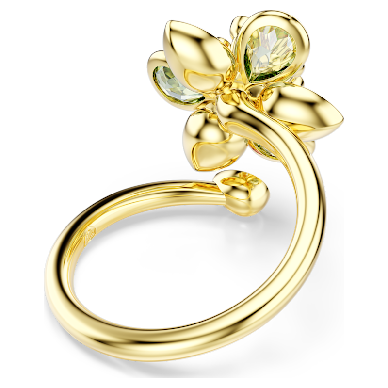 Anello aperto Idyllia, Taglio misto, Fiore, Verde, Placcato color oro