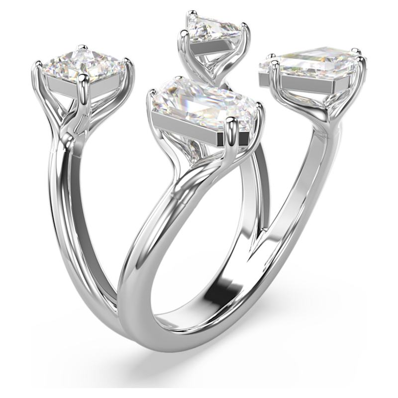 Anello aperto Mesmera, Taglio misto, Bianco, Placcato color argento