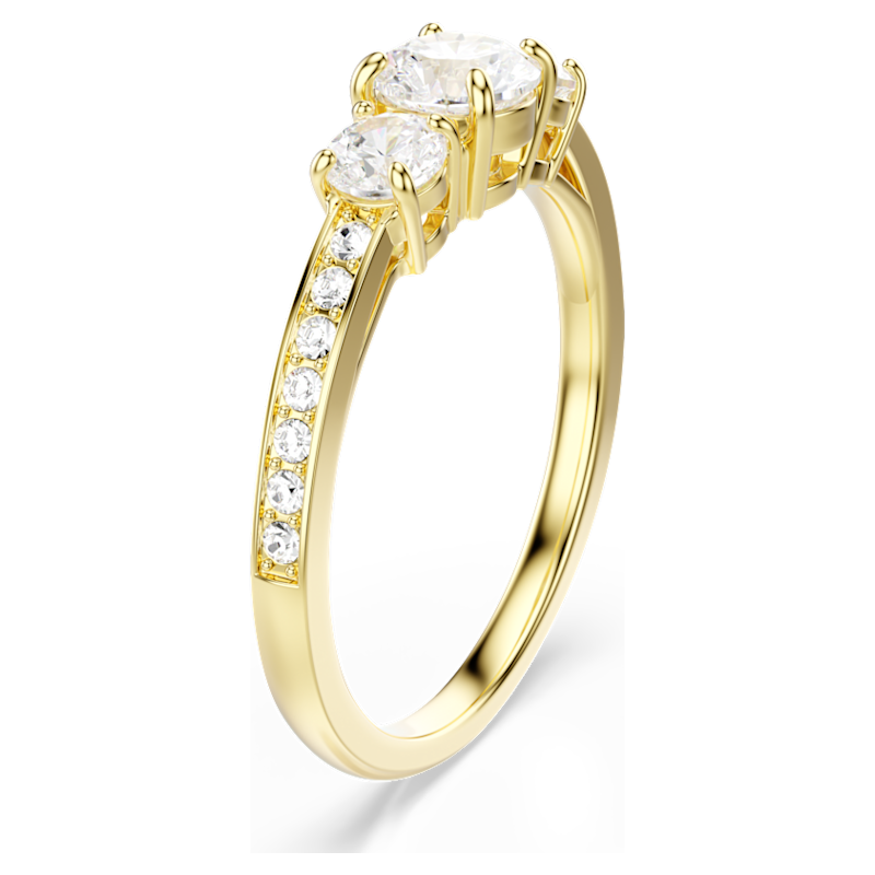 Pensata per ogni occasione, la famiglia Stilla evoca pura eleganza. Questo classico anello porta la radiosità ad un livello superiore grazie ai cristalli Cry lungo la fascia e ad un trio di Swarovski Zirconia dal taglio di precisione su una brillante finitura in tonalità oro. Uno splendido gioiello da indossare tutti i giorni, facile da abbinare ad altre creazioni della stessa famiglia.
