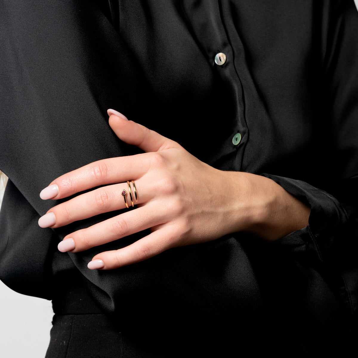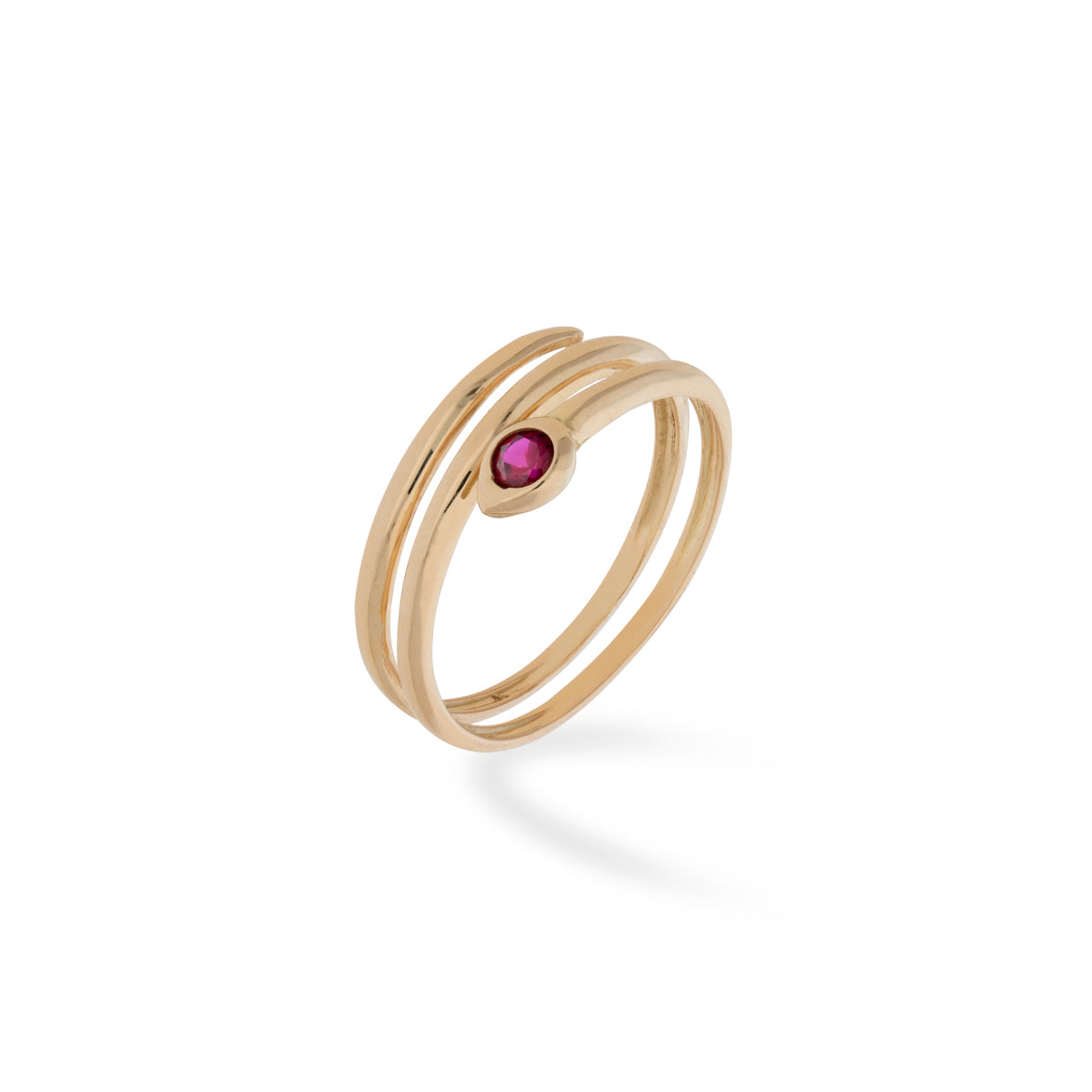 Anello serpente in oro giallo 18Kt e zirconi taglio brillante di colore rosso.
