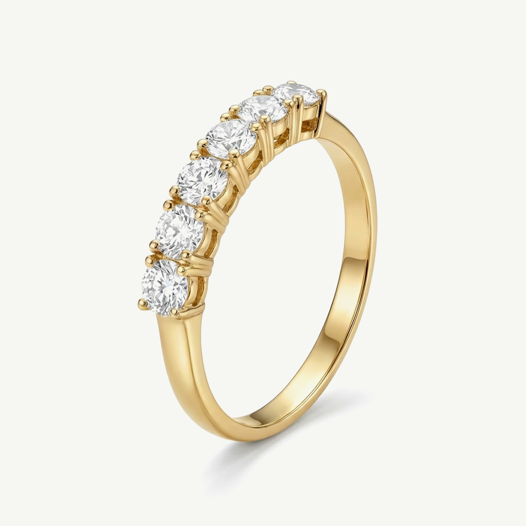Il gambo in oro giallo 9kt, sottile e lucido, valorizza la sequenza di pietre mantenendo il design armonioso ed equilibrato. Un anello versatile, perfetto da indossare da solo per un effetto elegante oppure abbinato ad altri gioielli per un look più deciso.