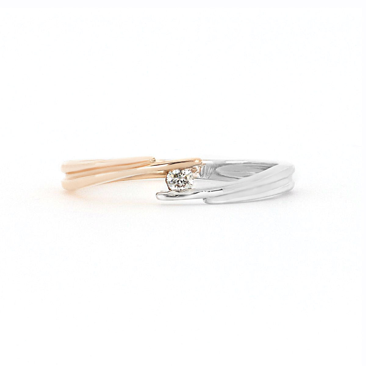 L’anello solitario in oro bianco e oro rosa 18 Kt con lavorazione fantasia e con diamante taglio brillante su montatura contrarié a griffe di 0,05 Ct, attira naturalmente la luce del sole e la riflette donando luminosità e brillantezza a tutto il gioiello. Questo anello solitario modello Valentino, è perfetto anche come anello di fidanzamento. La fedina grazie alle sue linee pulite e classiche, ha il potere di donare a questo splendido solitario, femminilità e grazia.