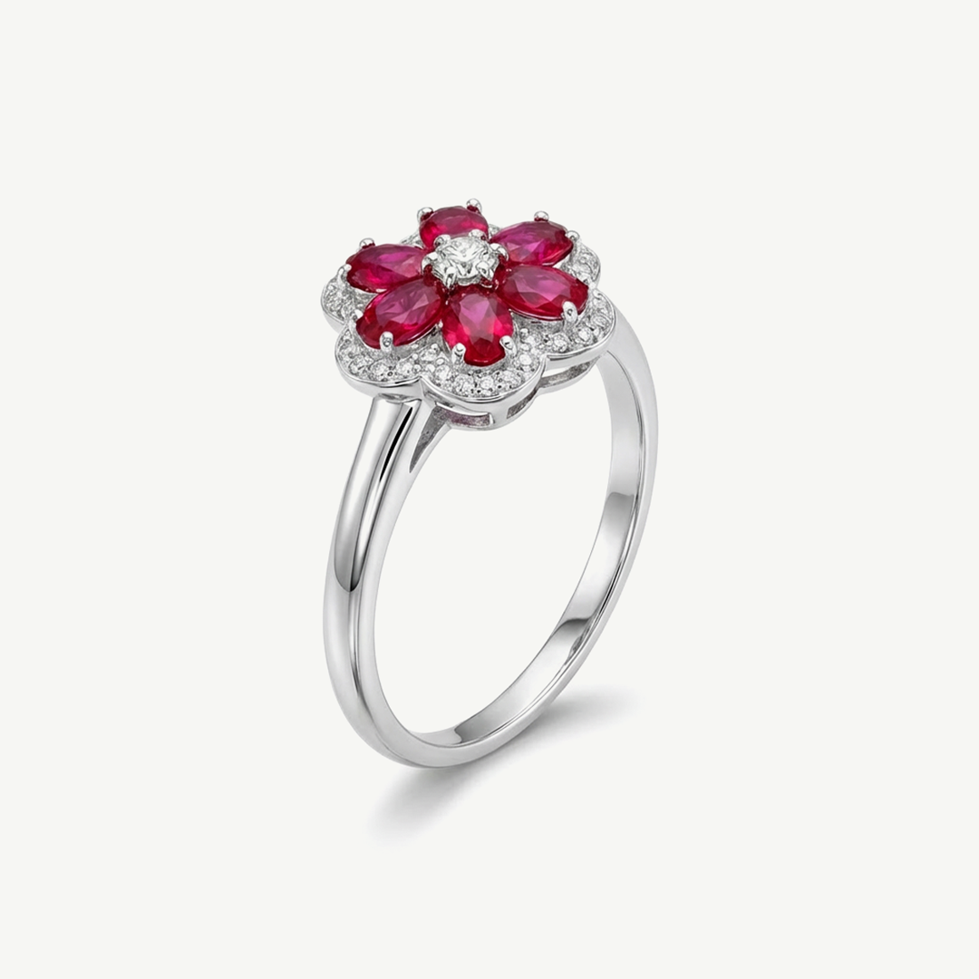 Anello Fabiani fiore in oro bianco 18kt con rubini e diamanti