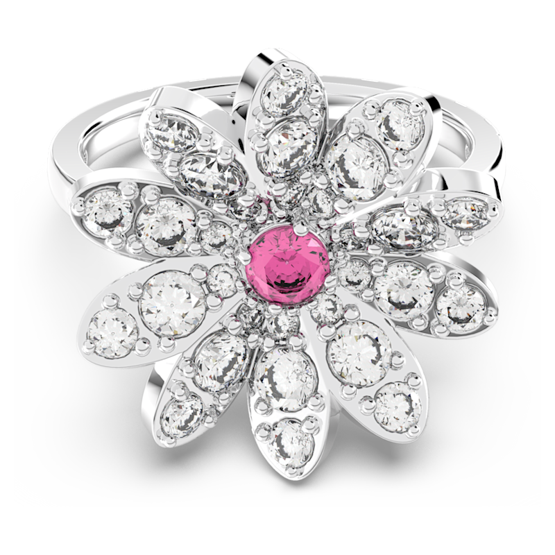 Questo giocoso anello floreale, caratterizzato da una straordinaria pietra rosa al centro, è arricchito da brillanti pietre trasparenti e rifinito da una placcatura in un mix di metalli. Pensa in modo contemporaneo e senza tempo.