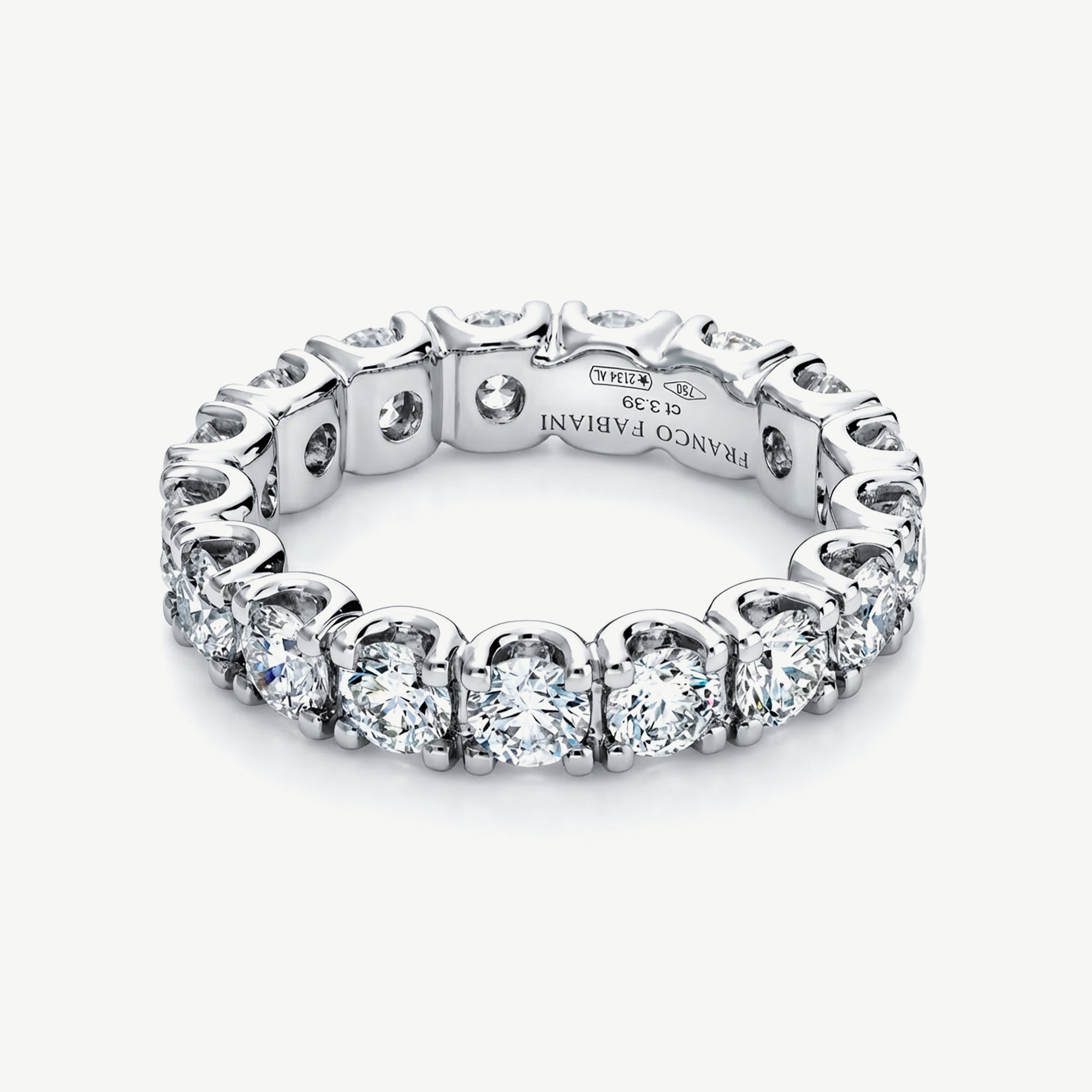 L’anello Eternity Franco Fabiani è la rappresentazione più pura del concetto di continuità e perfezione. Un gioiello iconico che celebra l’eterno attraverso una linea ininterrotta di luce, pensata per accompagnare ogni gesto con eleganza assoluta.