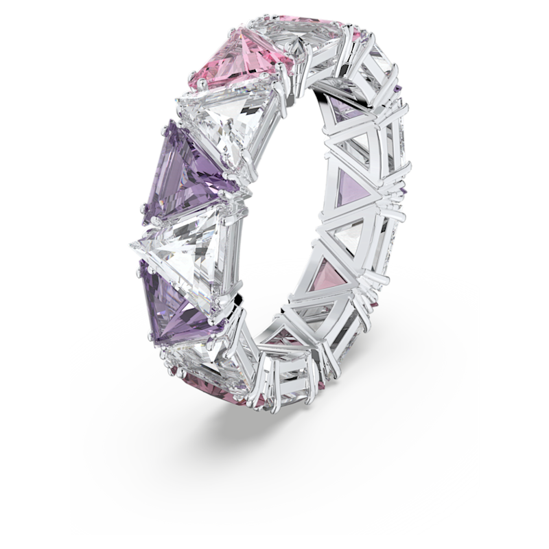 Per creare questo sfavillante anello cocktail sono state impiegate pietre taglio Triangle trasparenti e viola tessellate su una semplice fascia placcata in rodio. Pensato per sovrapporsi con altri anelli della famiglia Matrix, oppure come anello singolo, è destinato a divenire il tuo nuovissimo immancabile in guardaroba. Questo anello fa parte della famiglia Matrix ed è firmato dal Direttore creativo Giovanna Engelbert per la Collection I.