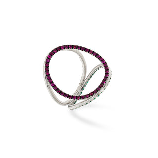 Anello Fabiani in oro bianco con diamanti, rubini e smeraldi
