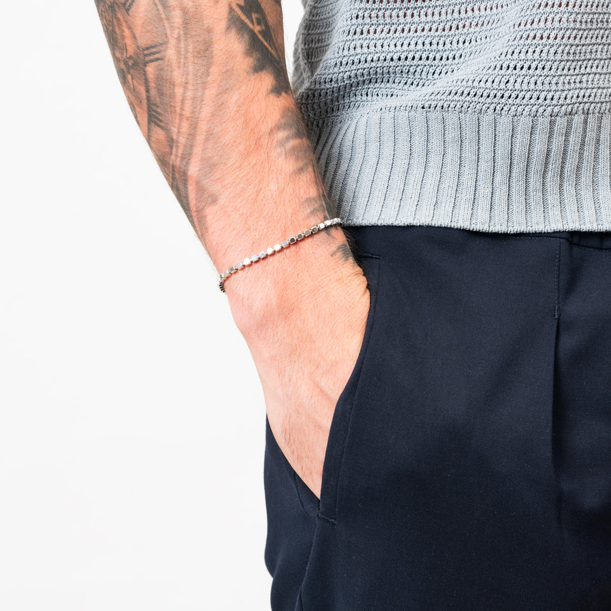 Bracciale in argento 925 a cubetti. Lunghezza 21 cm circa e chiusura a moschettone.