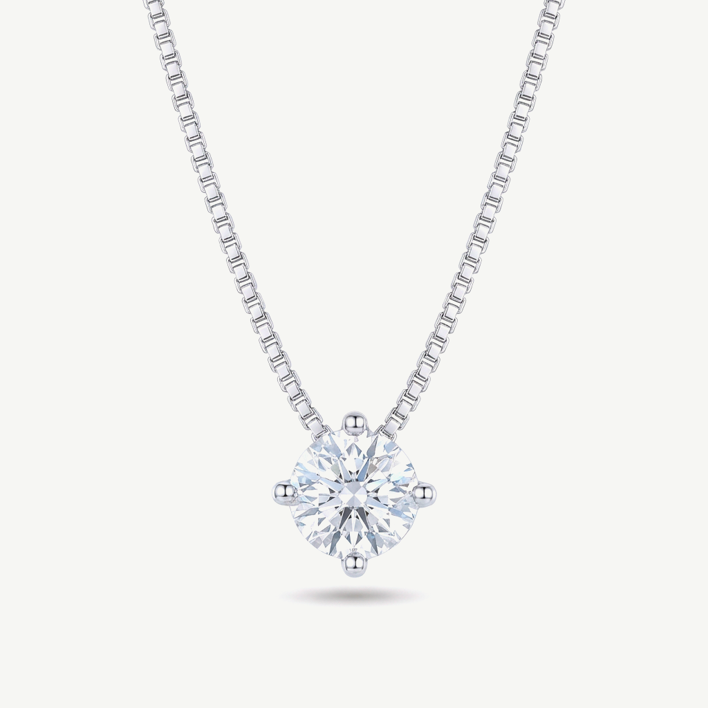 Raffinata ed equilibrata, la collana punto luce MONAÉ da 0,50 ct è realizzata in argento 925 e impreziosita da una moissanite colore D, certificata GRA, simbolo di purezza e brillantezza assoluta.