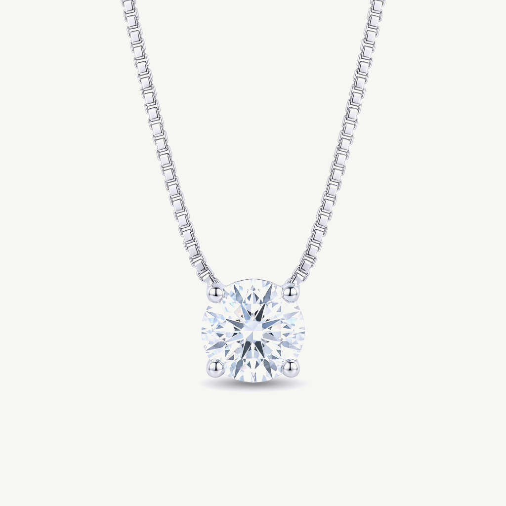 La pietra, incastonata con montatura a 4 griffes, esalta al massimo la luminosità e la purezza della moissanite, creando un effetto brillante e sofisticato che illumina il décolleté con naturale eleganza.