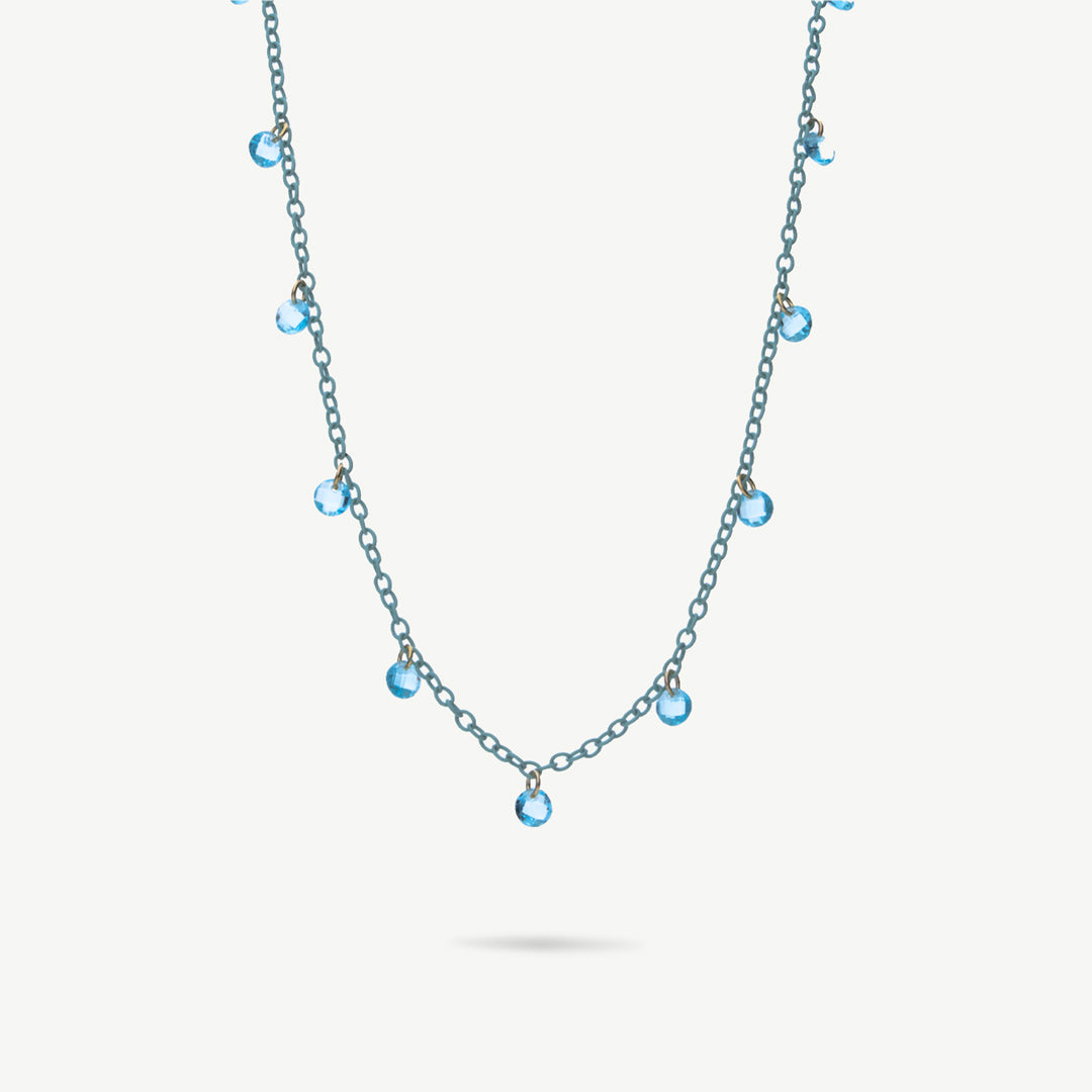 Una collana in argento 925 con cristalli azzurri che unisce stile moderno e delicatezza, ideale per chi desidera un gioiello raffinato ma dal carattere vivace e contemporaneo.