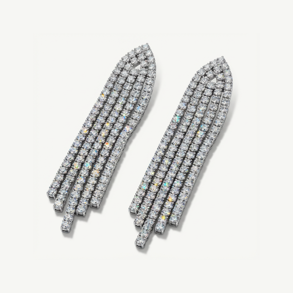 Leggeri, raffinati e pieni di luce: gli orecchini pendenti Fabiani sono l'accessorio perfetto per chi ama l'eleganza e un di brillantezza. Realizzati in argento 925, presentano una struttura con 5 file sottili di zirconi bianchi scintillanti, per un totale di 58mm circa di lunghezza totale che dona un effetto dinamico e seducente a ogni movimento.