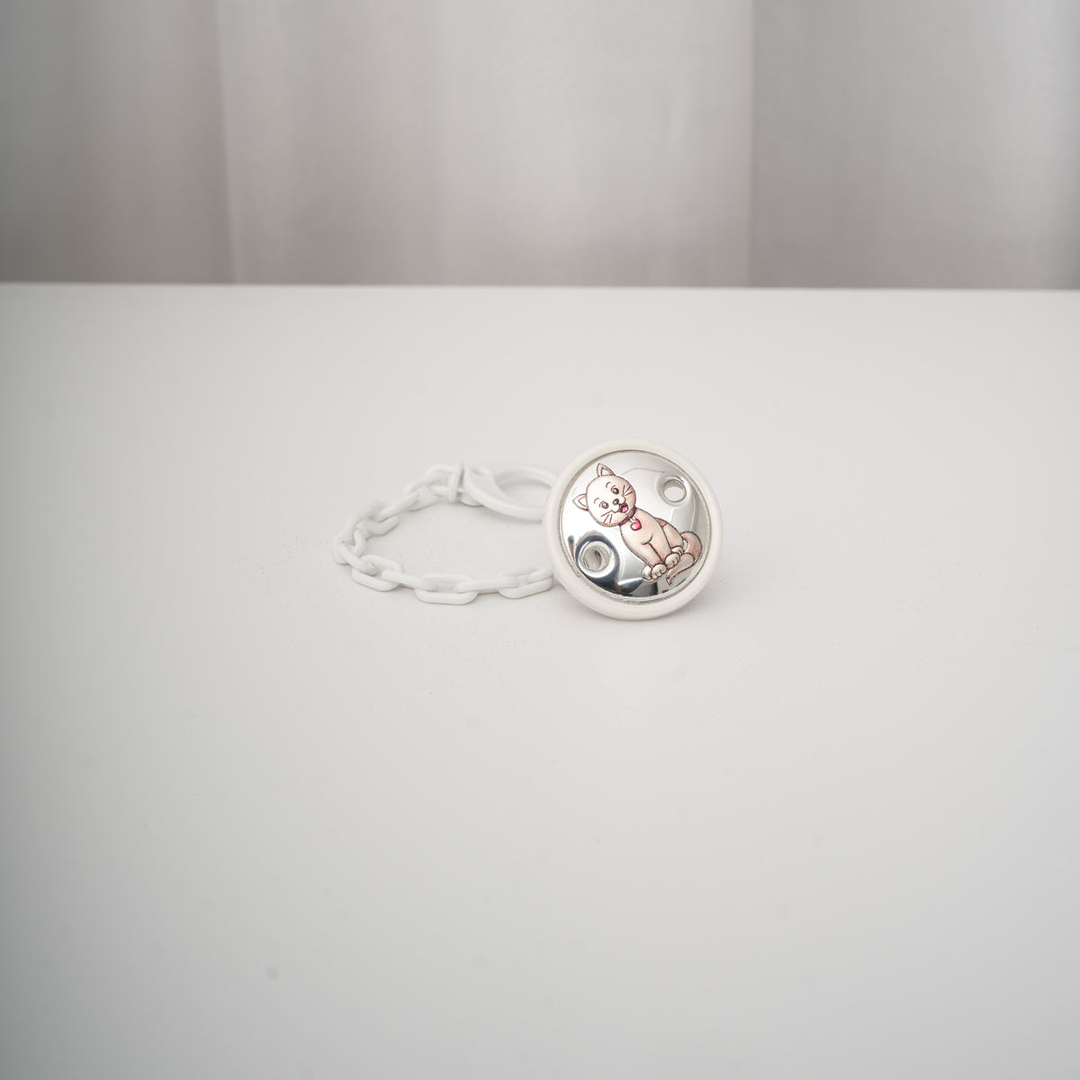 Dotata di clip sicura e pratica, permette di mantenere il ciuccio sempre pulito e a portata di mano. Un accessorio curato nei dettagli, che unisce funzionalità e stile in un piccolo gesto di affetto quotidiano.