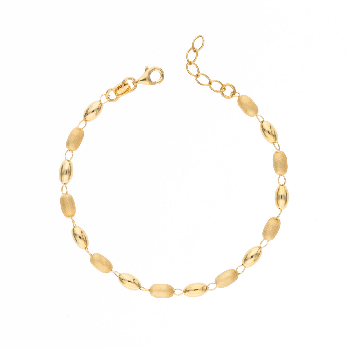 Questo elegante bracciale in argento 925 dorato combina stile e luminosità grazie all’alternanza di pepite satinate e lucide da circa 4 mm. Un design raffinato e moderno, perfetto per chi ama i dettagli preziosi ma allo stesso tempo sobri.