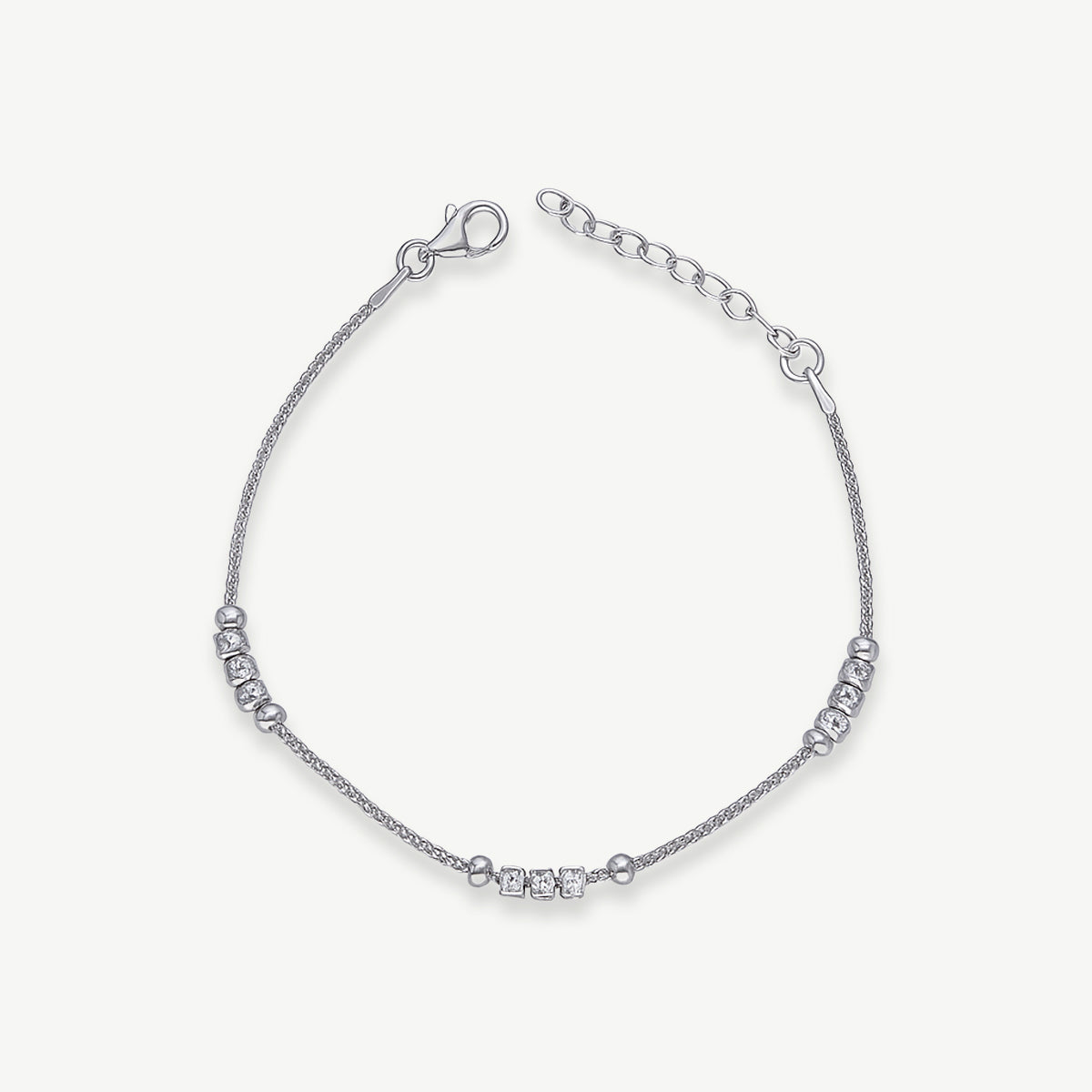 Un bracciale in argento 925 con zirconi che cattura la luce con delicatezza, perfetto per completare look quotidiani o da sera con un dettaglio luminoso e sofisticato.