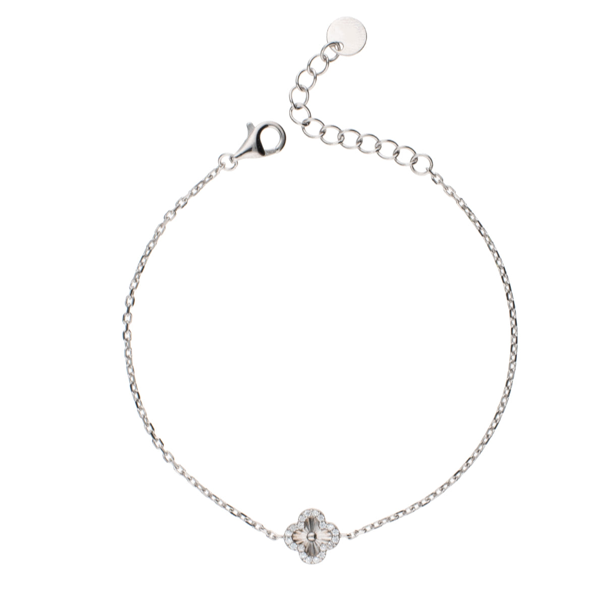 Un bracciale in argento con fiore e zirconi che unisce semplicità e luminosità, perfetto come idea regalo o per valorizzare qualsiasi look con un dettaglio raffinato.