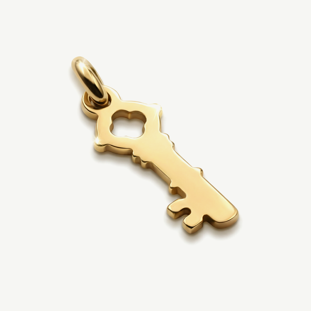 Realizzato in argento 925 dorato, questo ciondolo chiave si distingue per il suo design essenziale e luminoso, perfetto per essere indossato ogni giorno. La chiave è da sempre simbolo di legami importanti, promesse custodite e nuovi inizi, rendendo questo charm una scelta raffinata e carica di emozione.