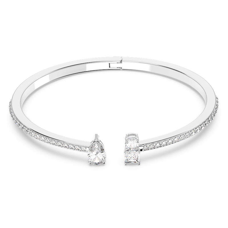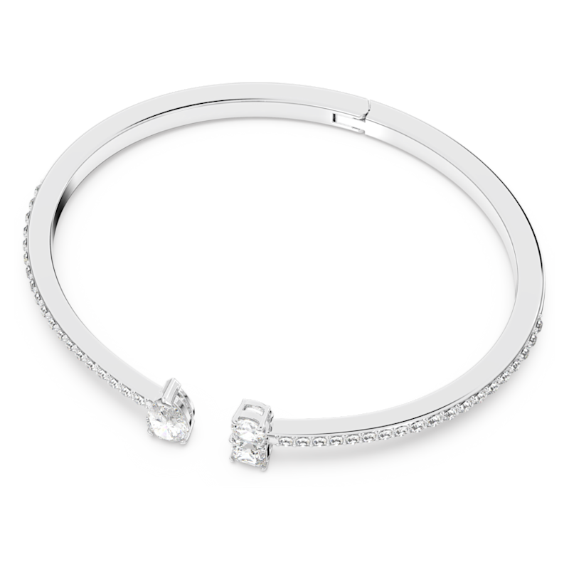 Bracciale rigido Mesmera, Taglio misto, Bianco, Placcato rodio