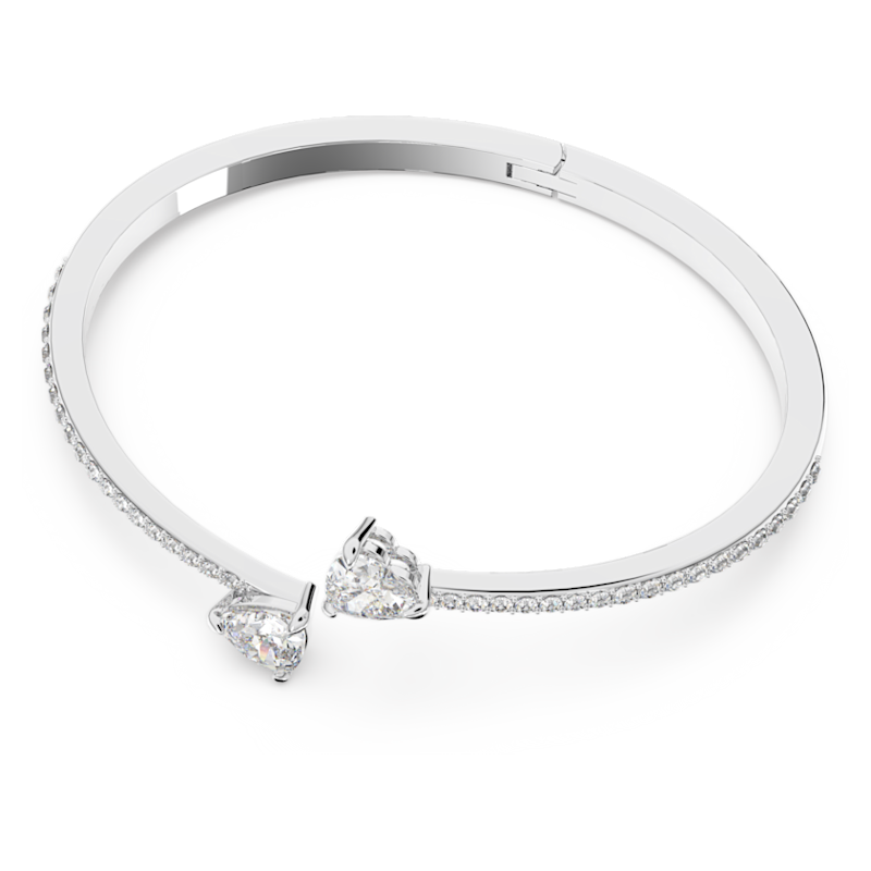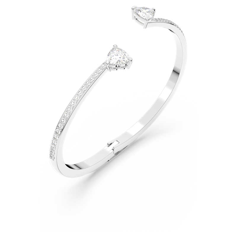 Bracciale rigido Mesmera, Cuore, Bianco, Placcato rodio