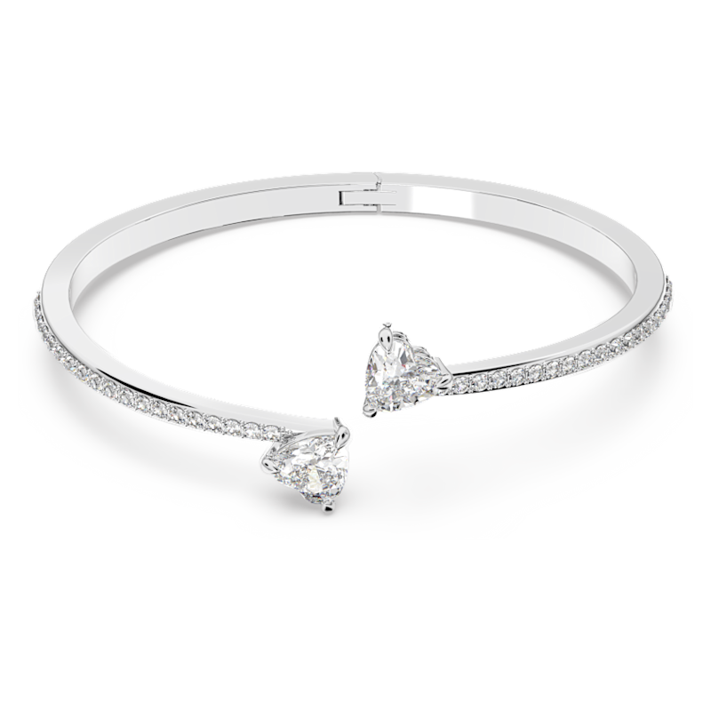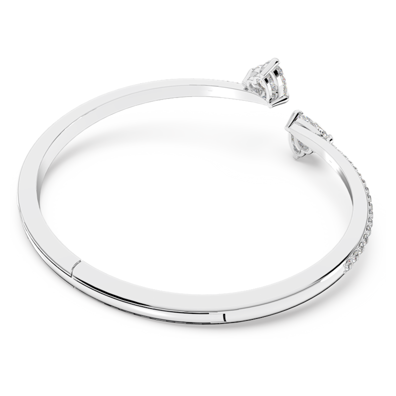 Bracciale rigido Mesmera, Cuore, Bianco, Placcato rodio
