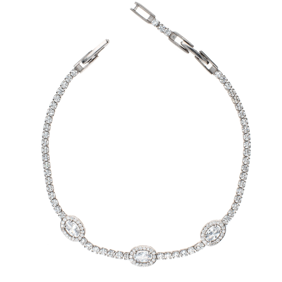Un bracciale in argento con zirconi ovali dallo stile elegante e senza tempo, ideale come regalo prezioso o come accessorio distintivo per eventi speciali.