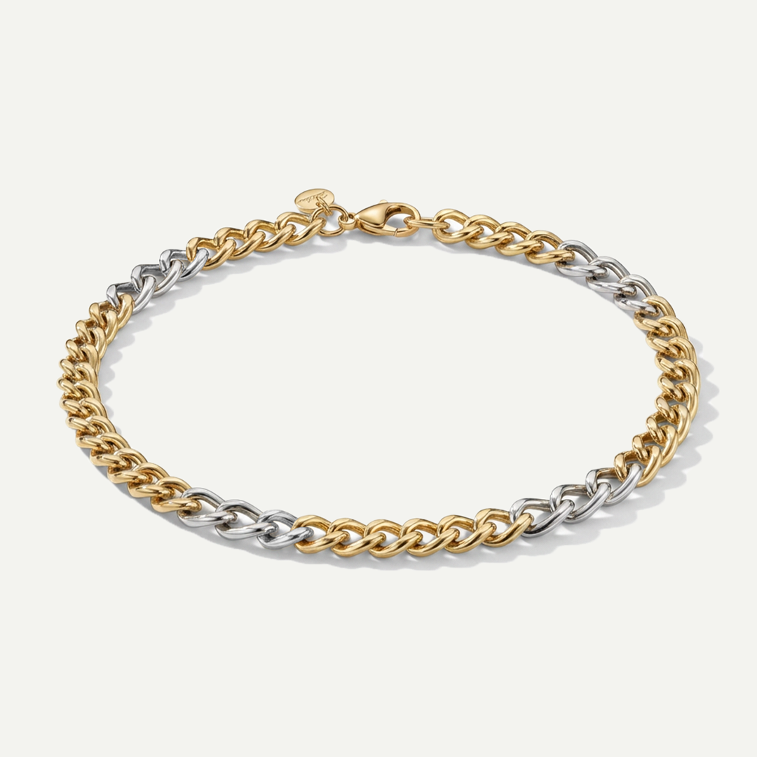 Il design pulito e senza tempo rende questo bracciale Fabiani in oro 18kt bicolore ideale per ogni occasione, dal quotidiano agli eventi più eleganti, confermandosi come un accessorio iconico e sempre attuale.