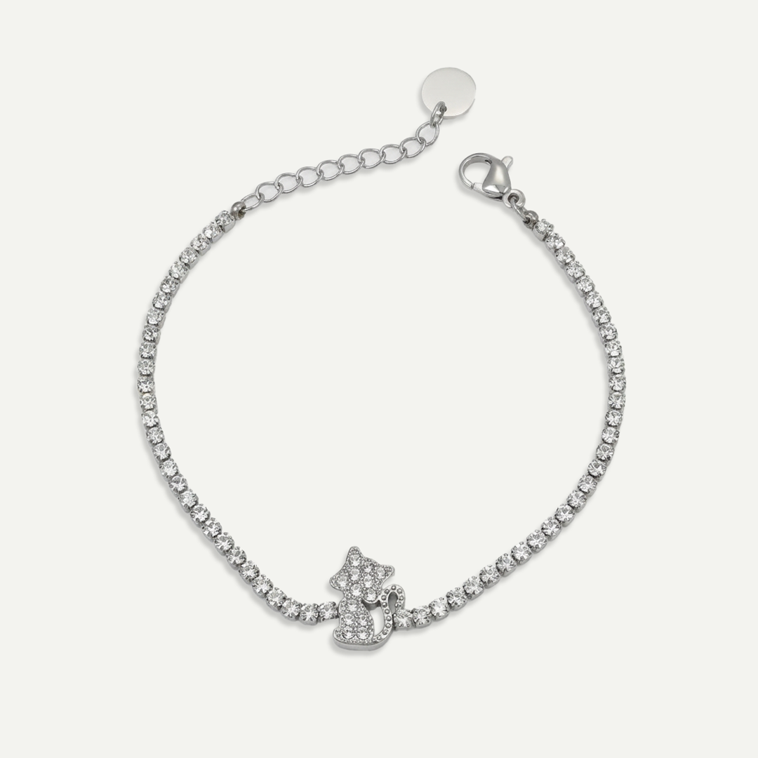 Bracciale Meridien con charm gatto – Acciaio e cristalli