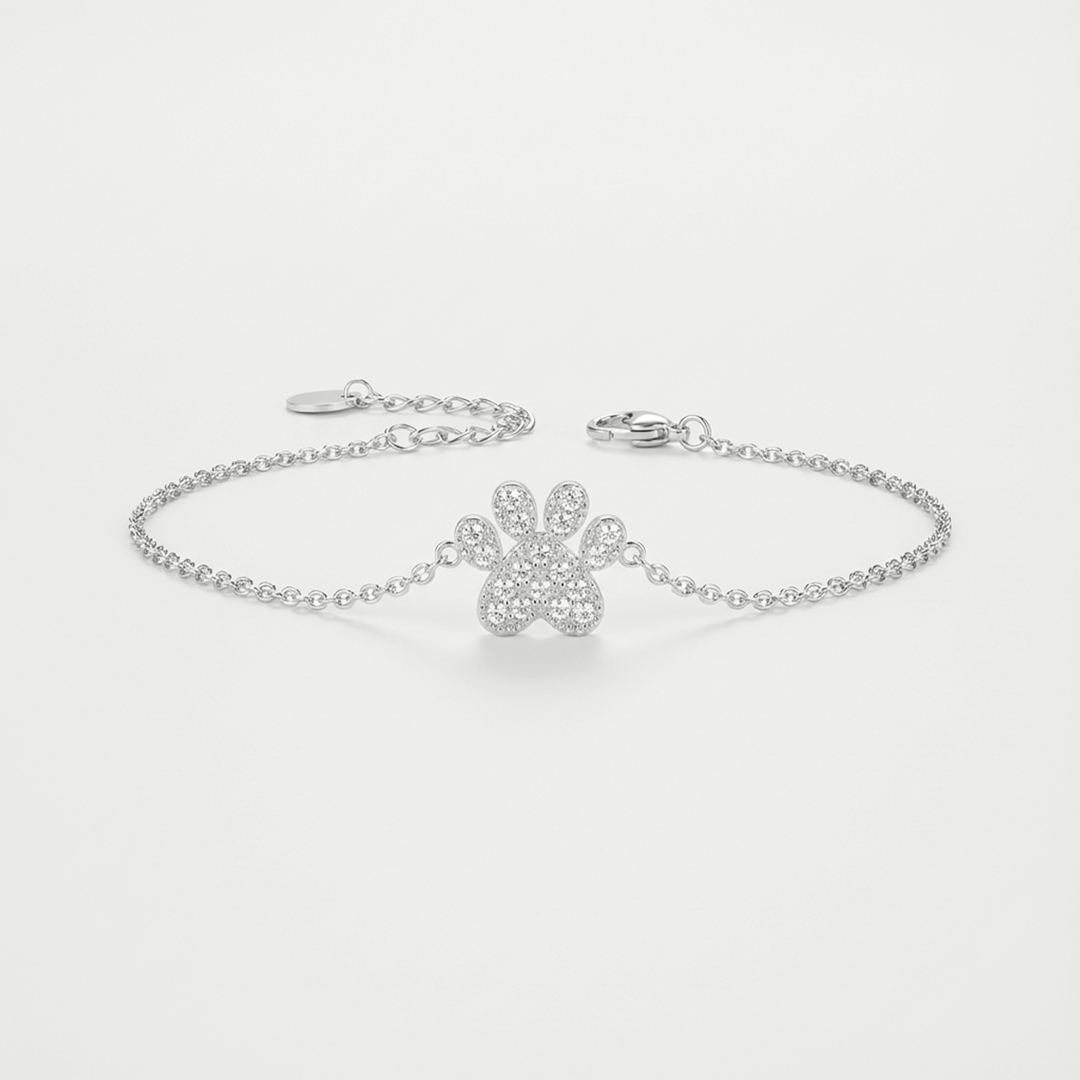 La zampa centrale, dal design curato e armonioso, cattura subito l’attenzione grazie al pavé scintillante che aggiunge luce e personalità al bracciale. Un accessorio delicato ma d’effetto, ideale da indossare ogni giorno per donare un tocco affettuoso e moderno al proprio look.