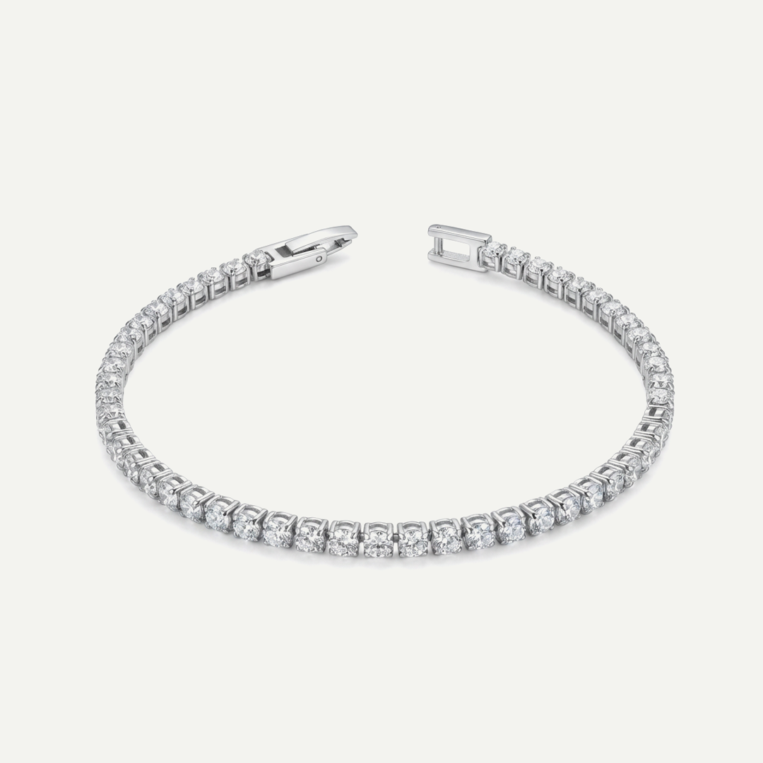 La fila continua di zirconi luminosi è incastonata per riflettere la luce ad ogni movimento, creando un effetto discreto ma sofisticato.