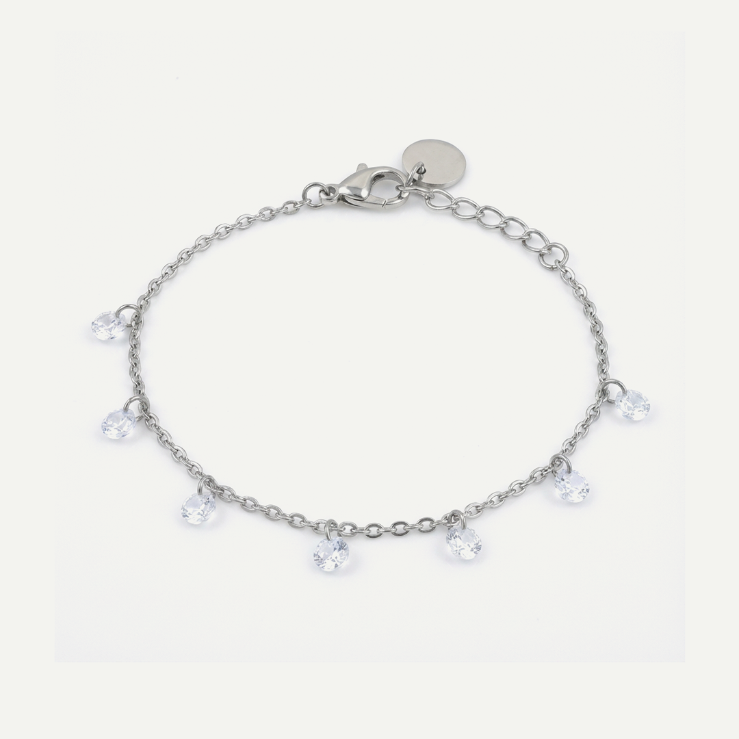 Il bracciale Meridien con piccoli charms pendenti cristallizzati è un gioiello delicato e brillante, perfetto per chi ama accessori leggeri ma ricchi di luce. Le gocce luminose oscillano con il movimento, creando un effetto elegante e raffinato, mentre la catena in acciaio assicura resistenza e una luminosità duratura.