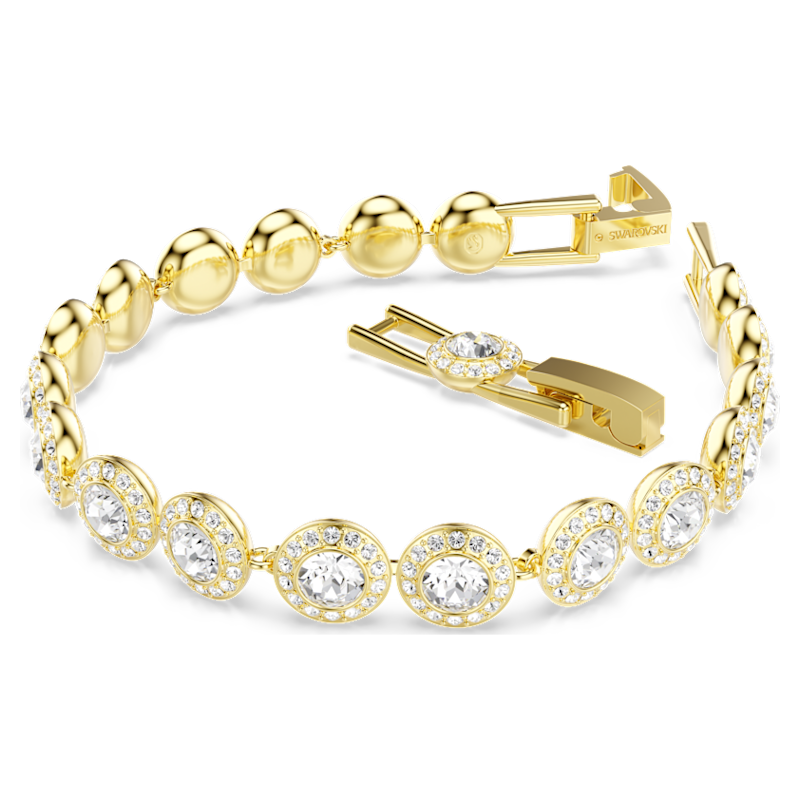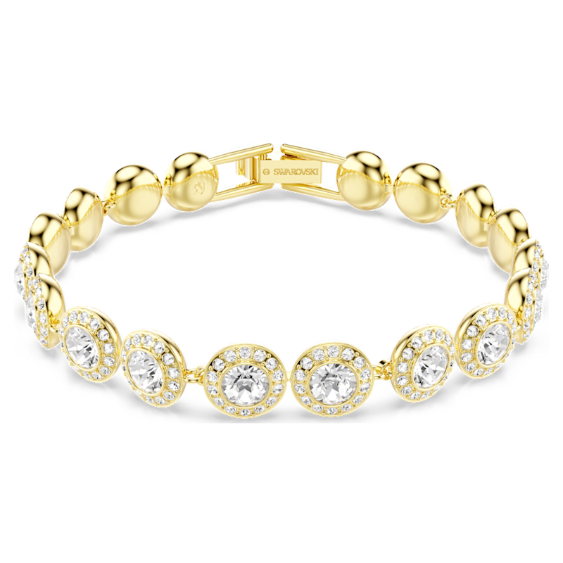 Un classico intramontabile. Questo bracciale Una Angelic placcato nella tonalità oro presenta una fila di cristalli Cry rotondi, ciascuno incorniciato da uno scintillante pavé di cristalli Cry. Abbinandosi perfettamente agli altri accessori della collezione Una Angelic, è perfetto come idea regalo.