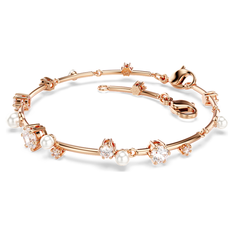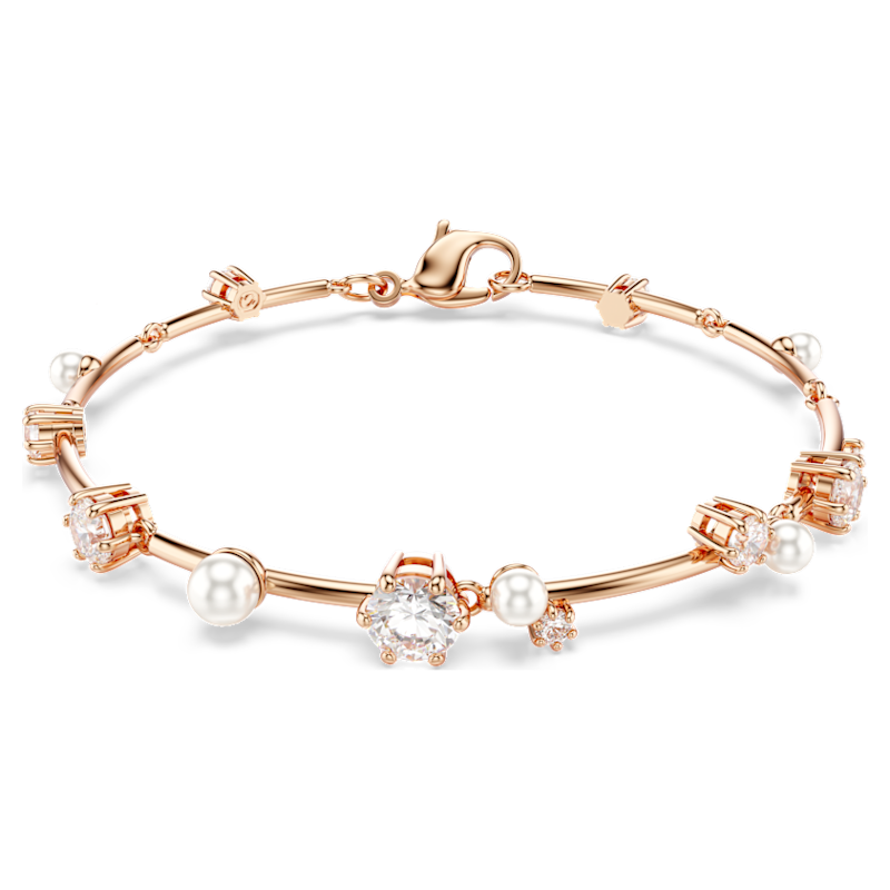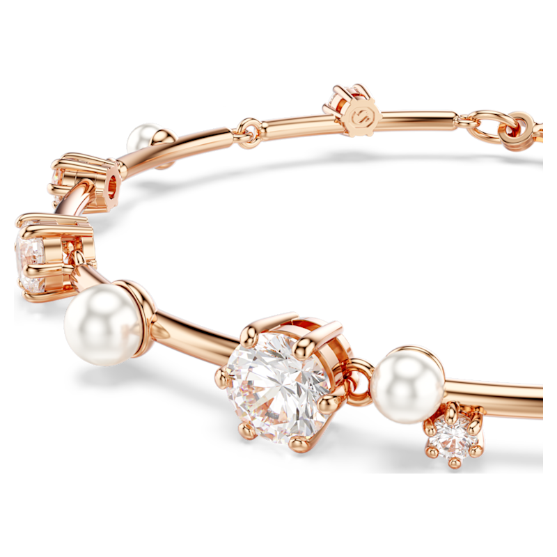 Indossa al polso il bagliore delle stelle con questo luccicante bracciale Constella. Ispirato alla meraviglia del cielo notturno, il design placcato in tonalità oro rosa presenta un gruppo di Swarovski Zirconia e Crystal Pearls Swarovski di diverse dimensioni, che sembrano fluttuare tra le barrette metalliche del gioiello. Il gancio a moschettone di facile utilizzo offre una comoda vestibilità attorno al polso. Indossalo insieme ad altri gioielli Constella per creare la tua personale aura cosmica.