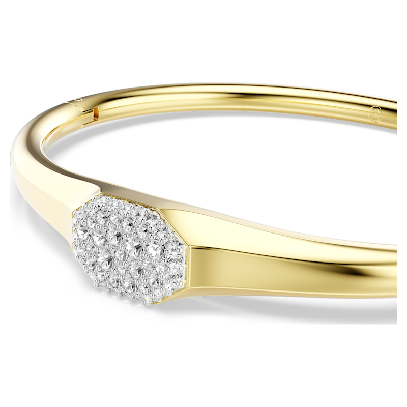 Questo sottile bangle Dextera è intriso di eleganza ed energia. La silhouette placcata in tonalità oro presenta cristalli rotondi di varie dimensioni, sapientemente incastonati in una formazione ottagonale utilizzando la tecnica Rodio flash di Swarovski. Completato da una chiusura Wonderclick, è un gioiello irrinunciabile, facile da abbinare sia di giorno che di sera. Indossalo insieme all’anello midi coordinato per la massima radiosità.