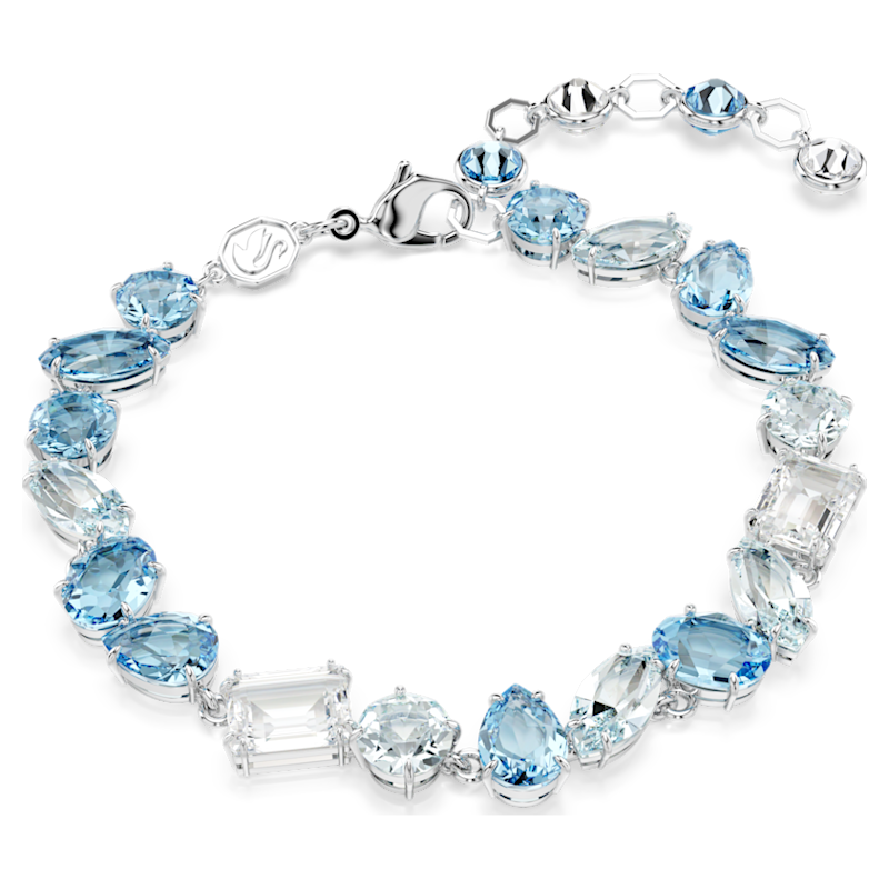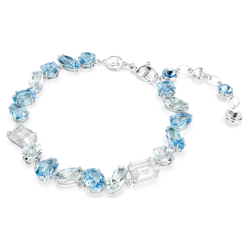 Questo bracciale Gema dalle sfumature blu ghiaccio sarà un’aggiunta straordinaria a qualsiasi collezione di gioielli. Il design placcato rodio gioca con una varietà di tagli e colori ispirati allo stile bohémien ed eseguiti con un savoir-faire all’insegna del lusso. Indossalo da solo per un glamour dal tocco disinvolto o sovrapponilo ad altri gioielli di questa affascinante famiglia per una serata speciale.