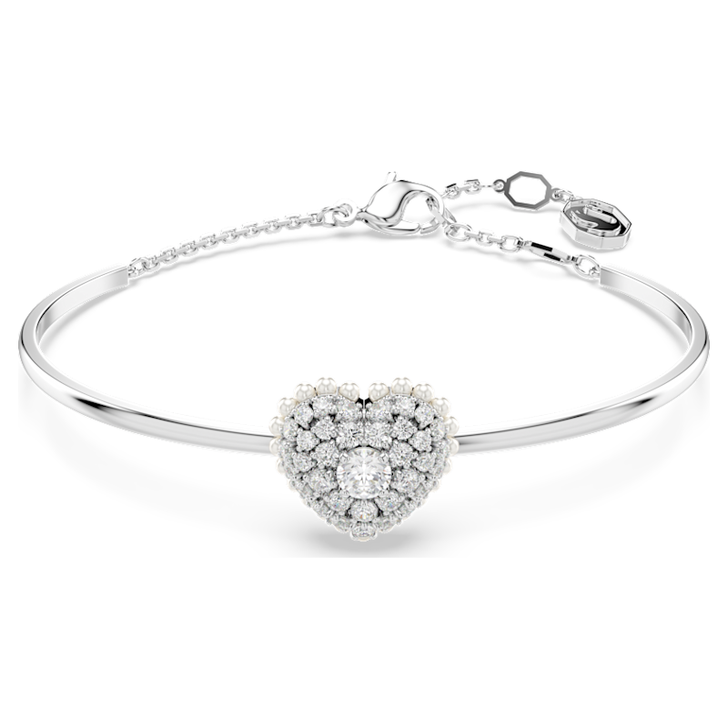 Questo bangle placcato rodio è un’espressione d’amore delicata ma non per questo meno accattivante. Il motivo a forma di cuore è stato realizzato con un design tridimensionale per il massimo volume. Per enfatizzarne l’effetto a cupola, questo gioiello è impreziosito da Swarovski Zirconia rotondi trasparenti, incastonati utilizzando la brillante tecnica chatonnage. Sceglilo come idea regalo speciale per sorprendere una persona che ami.