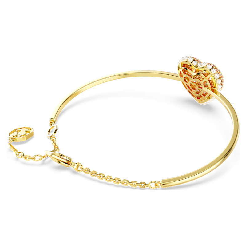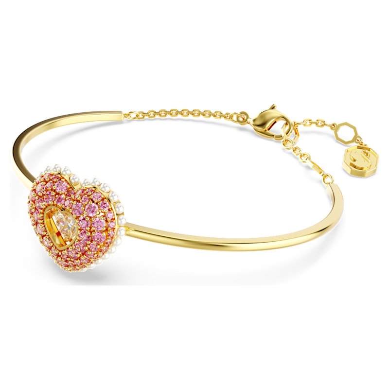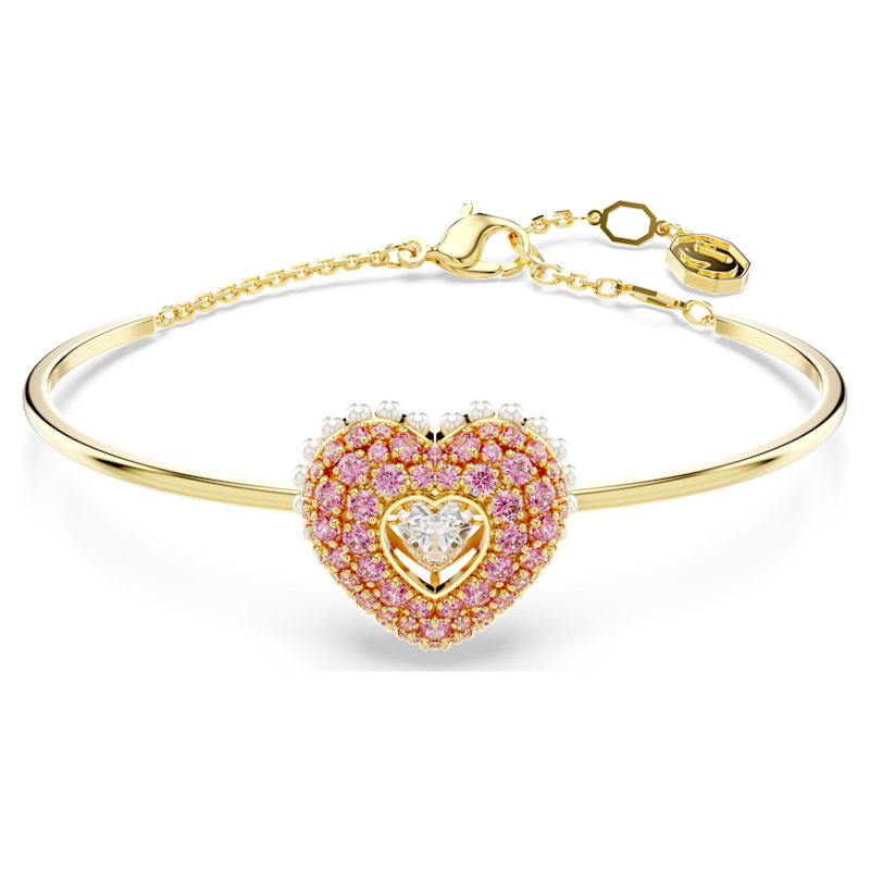 Questo bangle Idyllia color oro esprimerà tutto il tuo amore esibendo una combinazione di colori e tagli. Il motivo a forma di cuore è stato realizzato con un design tridimensionale per il massimo volume e include una serie di piccole Crystal Pearls bianche attorno al bordo. Per enfatizzarne l’effetto a cupola, il cuore è impreziosito da Swarovski Zirconia rotondi rosa, incastonati utilizzando la brillante tecnica chatonnage. Al suo centro, una pietra danzante, anch’essa a forma di cuore, cattura i raggi di luce da ogni angolazione. Sceglilo come idea regalo speciale per sorprendere una persona che ami.